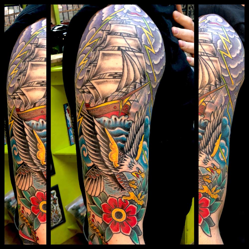 Hannah is well known for her color tattoo work in many different styles. Starting with clean, crisp line work as a base, Hannah is an expert at blending bright, saturated colors into her tattoos that pop off the skin. She will take into consideration your natural skin tone and tailor the colors in your tattoo to fit. Different complexions take color differently, and it’s important to pick the right color scheme to compliment your skin. Whether you are looking for a full color design, or a black and grey piece with a subtle pop of accent color, contact Hannah today to schedule your consultation!